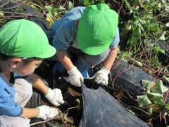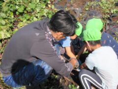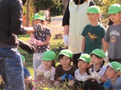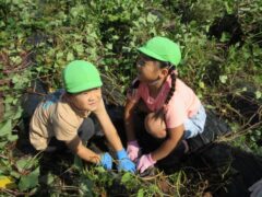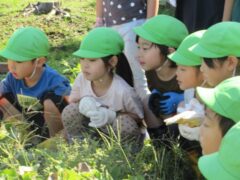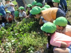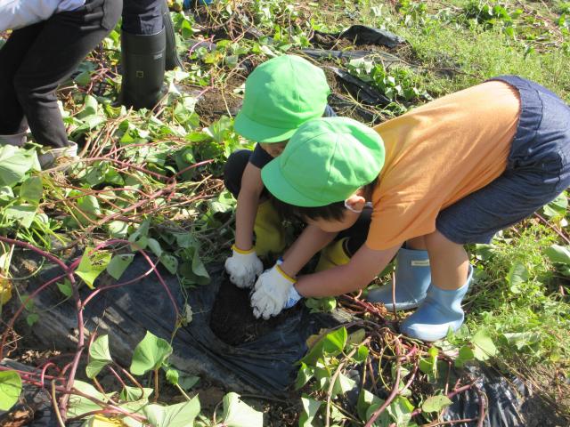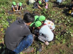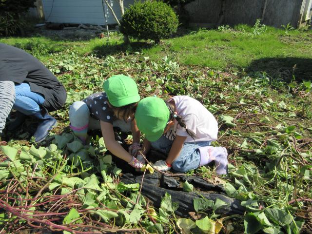 「あった!」と夢中になって土を掘り進める子どもたち。これが、なかなか大変な作業。「さつま芋は土の中で育つ」を実感するような貴重な体験でした。