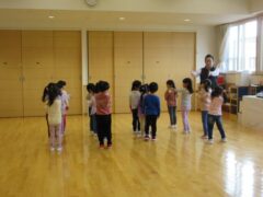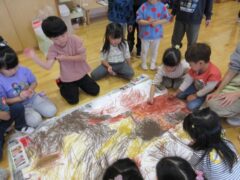 ここからは、朝の遊びの時間(きく、ちゅうりっぷ、すみれぐみの異年活動。各クラスの活動に入る前の遊びをそう名付けています。)
